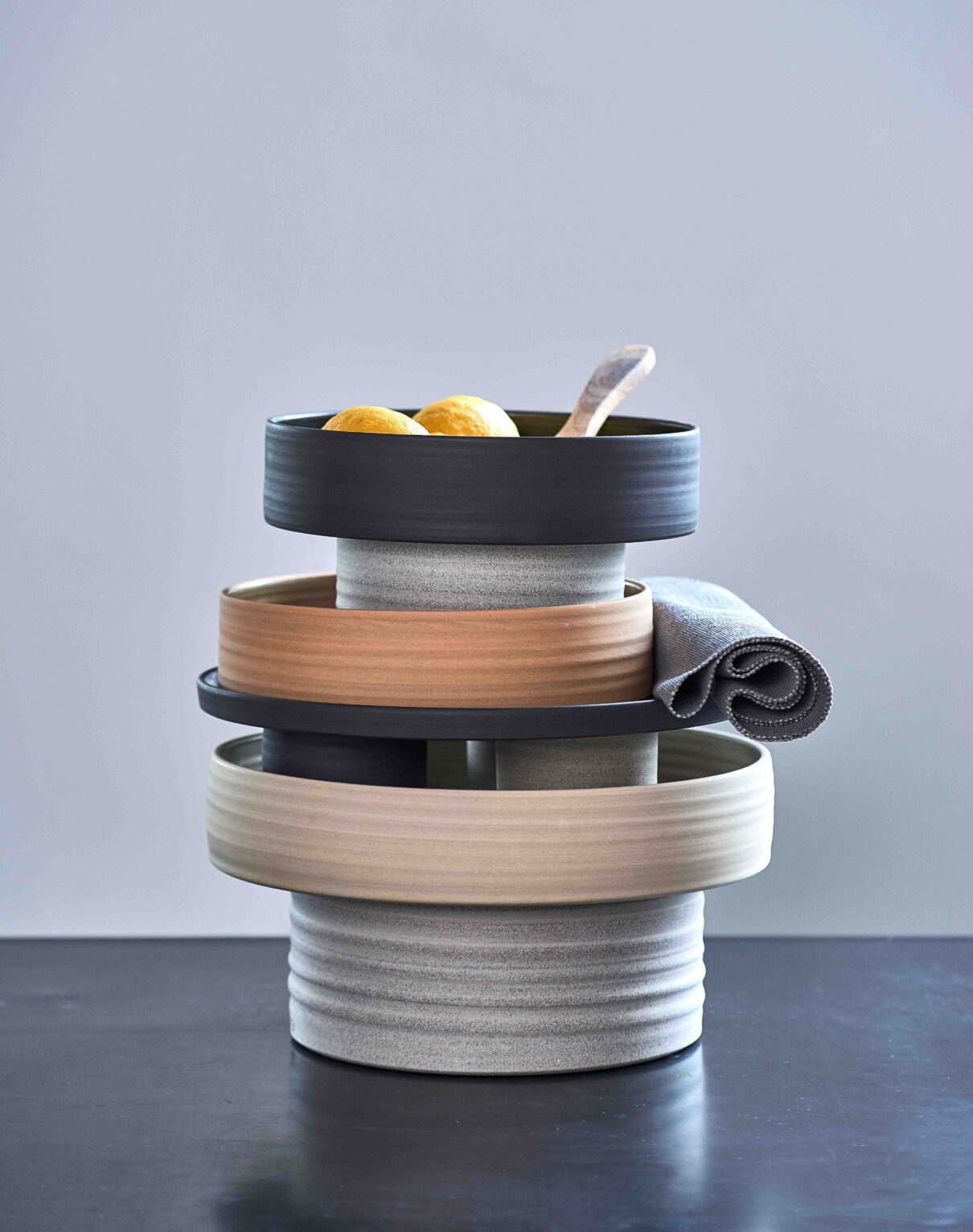 De serviezen van kaas+heger (Duitsland) zijn ontstaan vanuit het idee om te werken met de gekleurde regionale Westerwald steengoedklei. Kenmerkend is de pure materiaaluitstraling. De stukken zijn multifunctioneel waarbij een kom en een bord ook een pot en een deksel kunnen zijn. Designkwaliteit voor de moderne, internationale keuken.