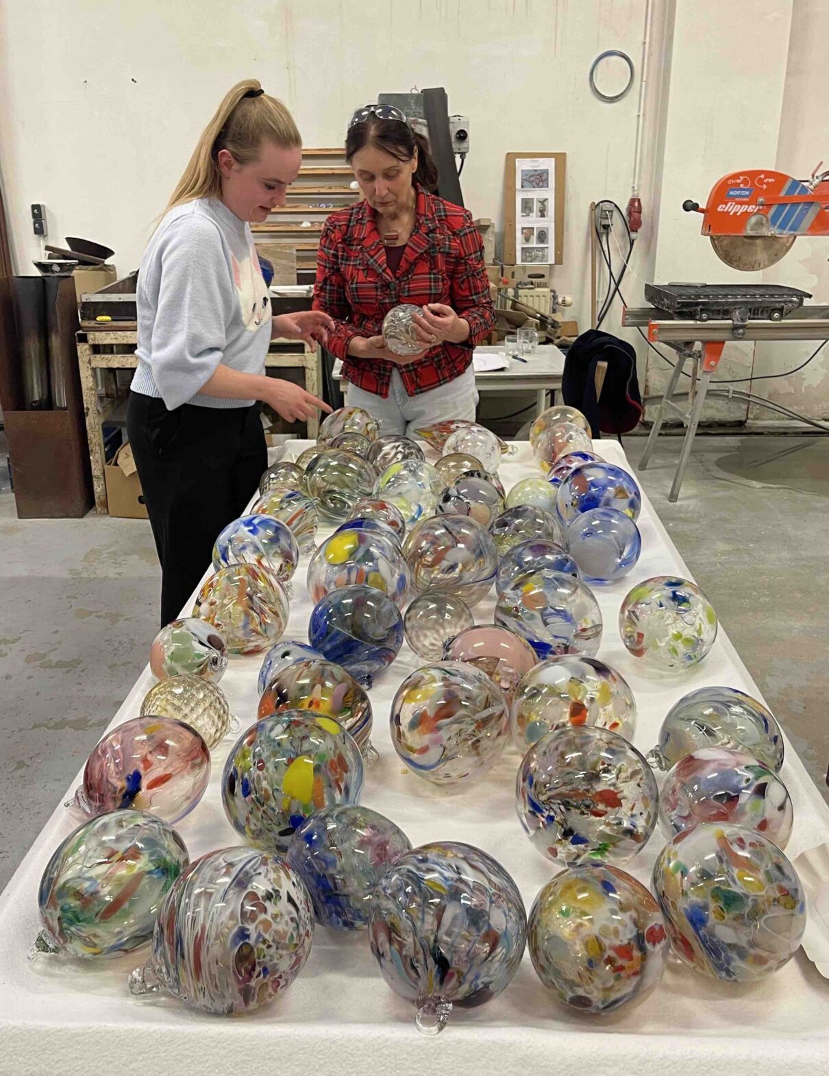 Voor velen was het een bijzondere ervaring om voor het eerst ‘live’ te zien hoe glas geblazen wordt, om te voelen hoeveel hitte er van de oven en het hete glas af komt en om te begrijpen hoe vloeibaar glas toch zo taai en stroperig kan zijn. De geblazen kerstballen zijn na het maken allemaal de koeloven in gegaan waar ze in 24 uur heel langzaam afkoelen om barsten te voorkomen. Alle deelnemers hebben straks met kerst dus een heel bijzonder en uniek ornament in huis.